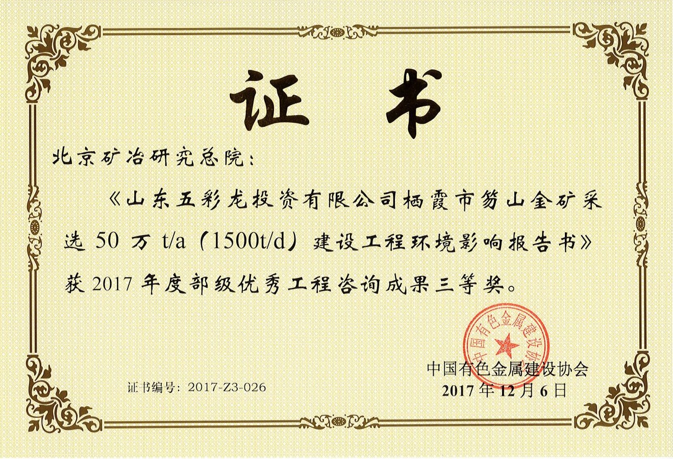 山东五彩龙投资有限公司栖霞市笏山金矿采选50万ta(1500td)建设...