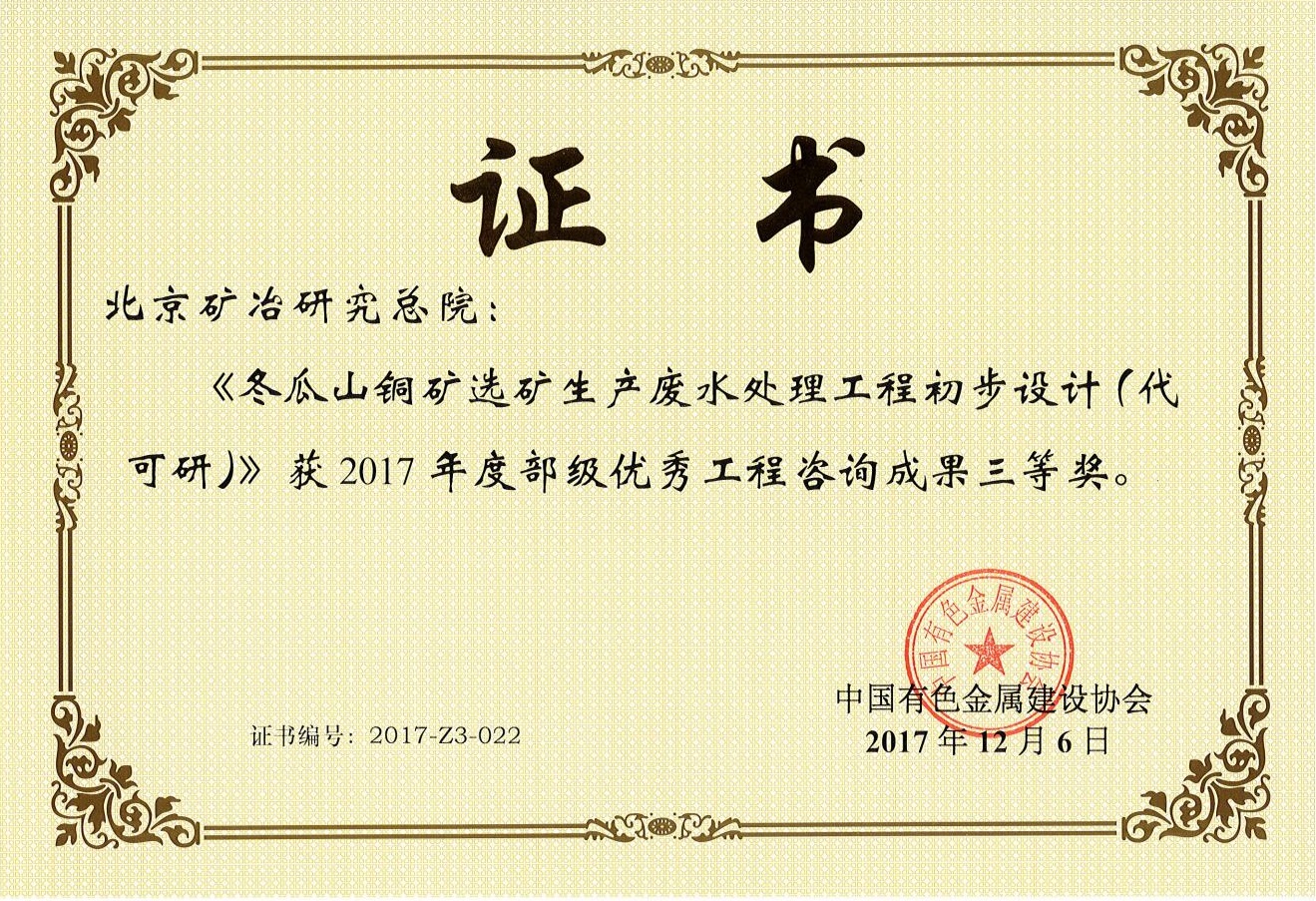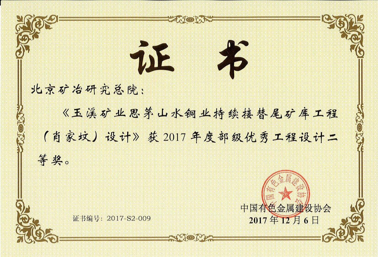 新疆金川矿业有限公司金山金矿采选冶工程——2017北勘设计奖