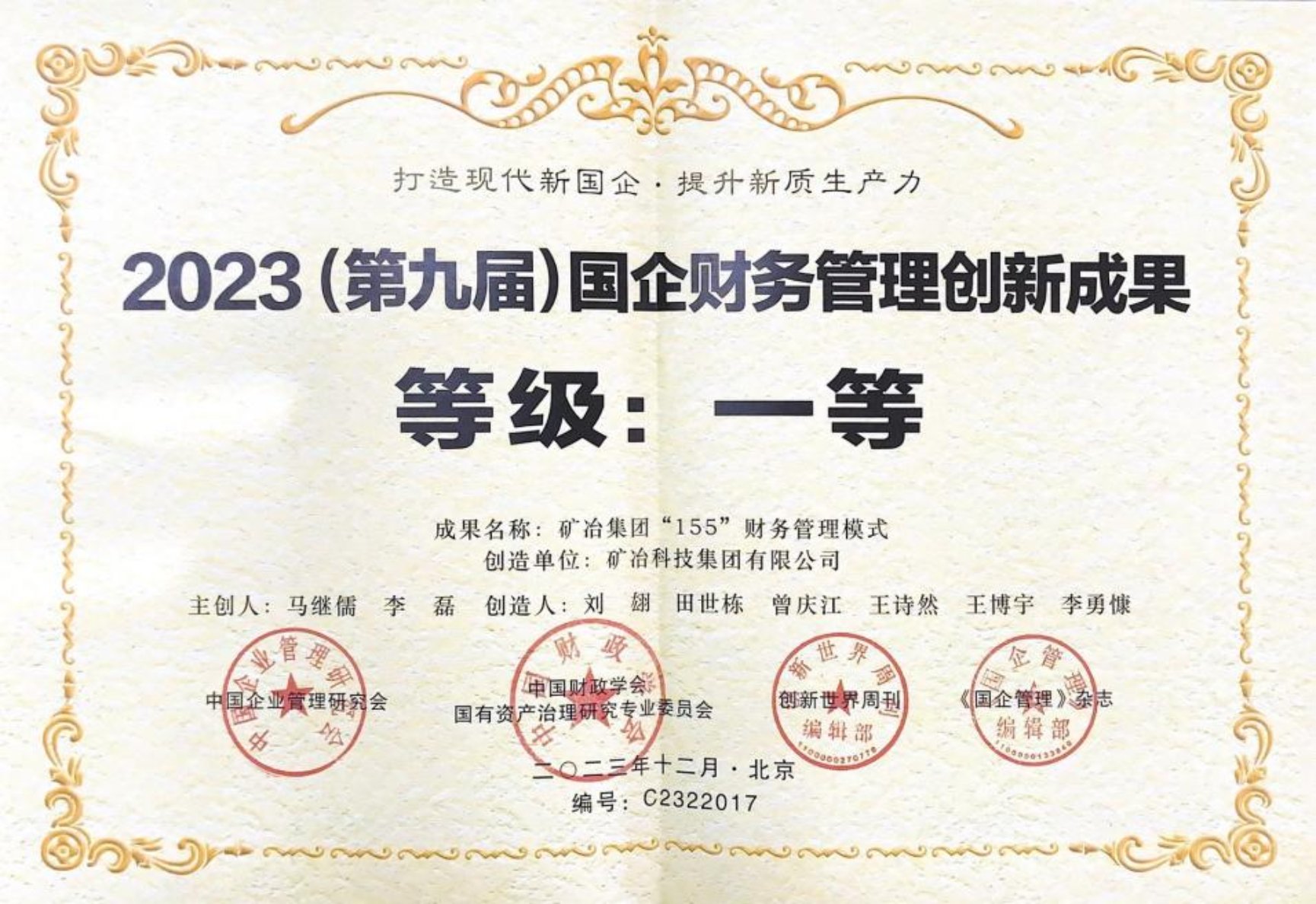 2023年12月23日,2023(第九届)国企管理年会在北京举行,会上发布了2023国企管理创新成果,九州体育申报的成果《九州体育“155”财务管理模式》荣获一等奖。