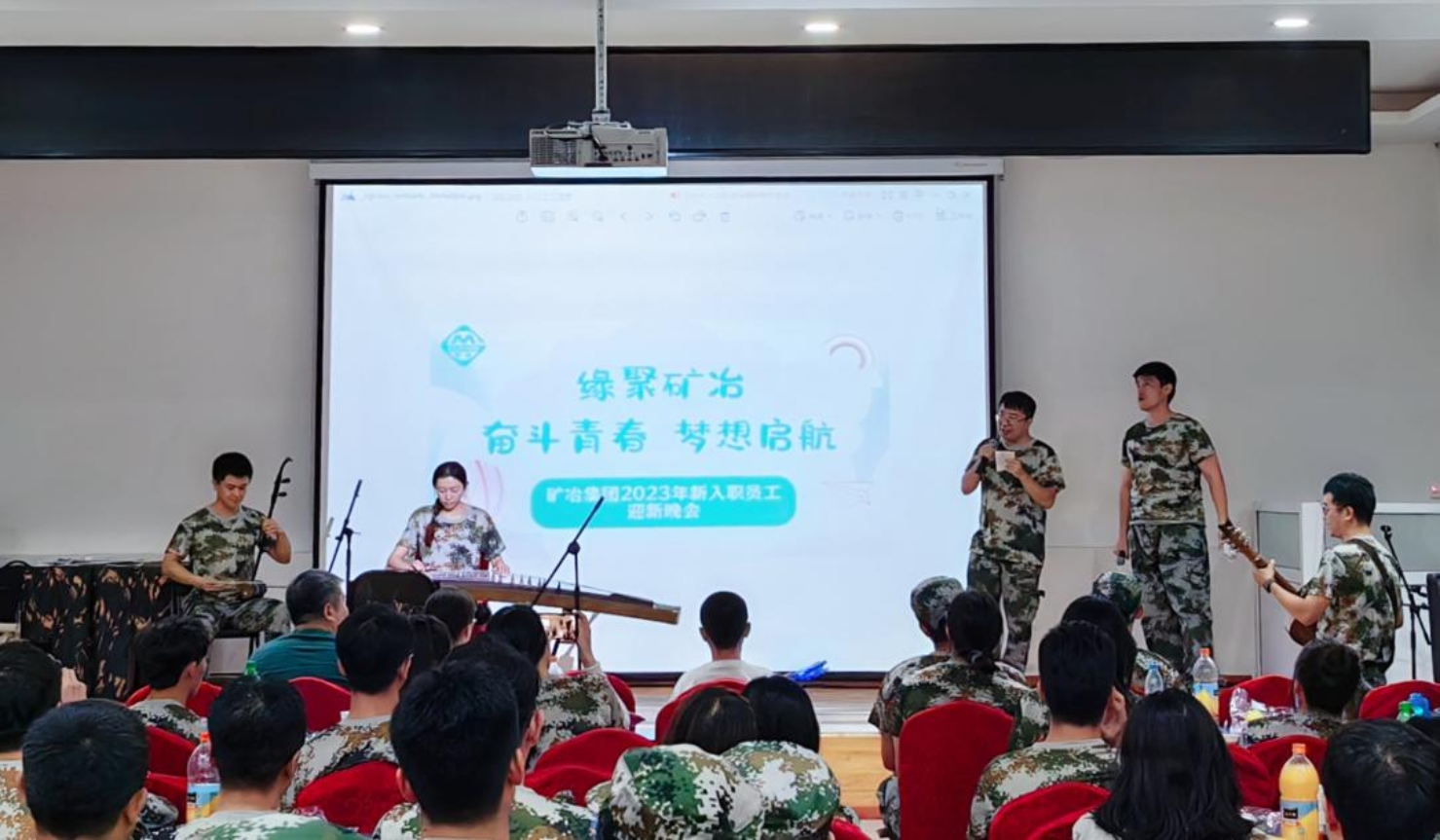 户外军事化训练期间,集团团委联合工会于8月19日晚在训练基地组织举办了“缘聚矿冶 奋斗青春 梦想启航”新入职员工迎新晚会,该活动是由全体新员工自编自导,在紧张的培训课余,编排了独唱、合唱、乐器等形式多样的文艺节目,为大家呈现了一场精彩的视听盛宴,在充分展示新员工青春风采的同时,营造了活泼温暖的沟通交流氛围,减少了新员工之间的陌生感,通过相互合作,增进彼此了解,帮助和激励他们以脚踏实地、积极向上、团结奋斗的心态面对今后的工作和生活,迅速融入九州体育大家庭。